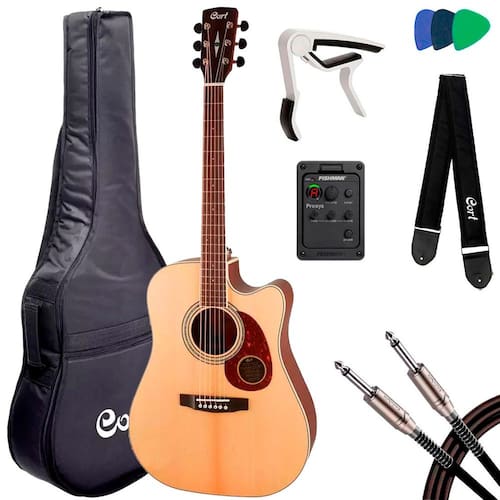 Violão Cort MR 710F NS, corpo folk em mogno com tampo maciço em Spruce, pré Fishman, com acabamento Natural Fosco.