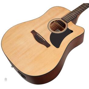 Cor do produto: Baixo brilho Cor: Natural Tratamento de Superfície: Cetim Tipo: Dreadnought Corte: Sim Construção do corpo: semi-sólido Tampo/face: Abeto, Sólido Placa Traseira: Sapele Laterais/ Costelas: Sapele Pescoço: Okoumé Escala: 650 mm Número de trastes: 20 Largura da porca: 43 mm Escala: Purpleheart Ponte: Purpleheart Porca: Plástico Captação: Sim Tipo de Captação: Piezo Modelo eletrônico: Ibanez AEQ-TP2 Controles: Volume, Bass, Treble, Tuner Sintonizador integrado: Sim Máquinas de afinação: Ibanez Hardware: Chrome Caso difícil: Não Cordas: D'Addario EXP16 País de produção: China