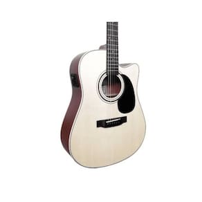 DADOS TÉCNICOS: - Origem: China - Shape: Dreadnought Cutaway, eletroacústico de aço - Cor: Natural Glossy (NG) - Tampo: Sitka Spruce maciço - Lateral e Fundo: Sapele - Braço: Okoume - Tensor: Bi-direcional - Escala: Rosewood maciço - Comprimento da escala: 648 mm (25,5”) - Cavalete: Rosewood maciço - Tarraxas: Blindadas cromadas 3+3 - Pestana: PPS (44 mm de largura) - Rastilho: PPS (72 mm de largura) - Equalizador: Fishman Presys II, ativo com 2 bandas, afinador e saída P-10 - Acabamento: Verniz brilhante (tampo) e verniz fosco (faixa/fundo) - Cordas: Aço, similares à Giannini GEEFLK .011-.052 - Headstock: Placa adicional em Rosewood - Dimensões da caixa: 395 x 295 mm (largura) | 102 x 122 mm (altura) - Tamanho total: 104 cm (40,94”) - Acompanha: Bag de nylon preta acolchoada