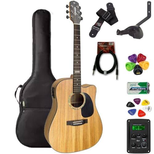 ------------------------------------------------------------------------------------------ O novo violão GIANNINI GF-1D é um violão folk eletroacústico, novo lançamento da marca e apresenta acabamento diferenciado, novo pré-amplificador e captação, além de novas cores. Indicado para quem procura um ótimo violão com cordas de aço de ótima qualidade e ótimo custo-benefício. Modelo: Violão Folk Eletroacústico Cutaway Tampo: Spruce Faixa e fundo: Linden Braço: Catalpa Escala: Rosewood Trastes: 20 em Alpaca