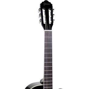 O tampo em Linden, uma madeira de excelente qualidade, contribui para o equilíbrio sonoro do violão. As tarraxas clássicas niqueladas garantem uma afinação precisa e estável, enquanto os trastes asseguram a precisão das notas, evitando trastejos indesejados.