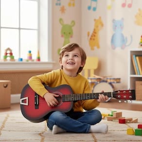 O violão musical infantil vai desenvolver os sentidos das crianças, estimulando a percepção musical, assim como a coordenação motora e a criatividade, o produto é rico em detalhes como um violão e um som magnifico além se ser uma brincadeira super divertida, também auxilia no aprendizado da criançada Feito em madeira de alta qualidade, o instrumento oferece um som rico e encorpado, ideal para desenvolver habilidades musicais desde cedo. Seu tamanho mini facilita o manuseio, permitindo que os pequenos aprendizes toquem com conforto e segurança. As cordas são em aço inox, e para fixação possui tarraxas com ajuste para a afinação, porem não é possível afinar este violão como um instrumento brinquedo. Especificações: Marca: grupo Com certificado do inmetro: 008987/2025 Medidas: comprimento: 54cm - largura: 22cm - altura: 7cm Acompanha uma corda extra e uma palheta Cor: vermelho. O violão infantil é perfeito para as crianças que querem brincar e despertar o talento para música. O violão infantil é leve, confortável e se ajusta perfeitamente no posicionamento das mãos. Possui cordas em aço e caixa em madeira com pintura envernizada e selada. É recomendado para crianças de 03 a 07 anos de idade. É um brinquedo, portanto o produto não afina perfeitamente. Material: madeira e cordas de aço. contra defeitos de fabricação Homologação Inmetro: CE-BRI/IQB 005923 52559/19-001 Marca: Não Informado