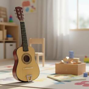 O violão musical infantil vai desenvolver os sentidos das crianças, estimulando a percepção musical, assim como a coordenação motora e a criatividade, o produto é rico em detalhes como um violão e um som magnifico além se ser uma brincadeira super divertida, também auxilia no aprendizado da criançada Feito em madeira de alta qualidade, o instrumento oferece um som rico e encorpado, ideal para desenvolver habilidades musicais desde cedo. Seu tamanho mini facilita o manuseio, permitindo que os pequenos aprendizes toquem com conforto e segurança. As cordas são em aço inox, e para fixação possui tarraxas com ajuste para a afinação, porem não é possível afinar este violão como um instrumento brinquedo. Especificações: Marca: grupo Com certificado do inmetro: 008987/2025 Medidas: comprimento: 54cm - largura: 22cm - altura: 7cm Acompanha uma corda extra e uma palheta Cor: natural O violão infantil é perfeito para as crianças que querem brincar e despertar o talento para música. O violão infantil é leve, confortável e se ajusta perfeitamente no posicionamento das mãos. Possui cordas em aço e caixa em madeira com pintura envernizada e selada. É recomendado para crianças de 03 a 07 anos de idade. É um brinquedo, portanto o produto não afina perfeitamente. Material: madeira e cordas de aço. contra defeitos de fabricação Homologação Inmetro: 7135/2021-BRI-1 Marca: Não Informado