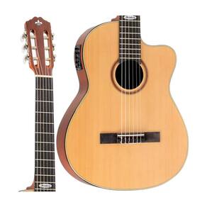 Violao classico eletroacustico, com corpo em formato cutaway (recorte) para facilitar acesso as casas mais agudas. Ideal para iniciantes e uso em pequenos palcos, com captacao para amplificacao e acabamento em visual natural.