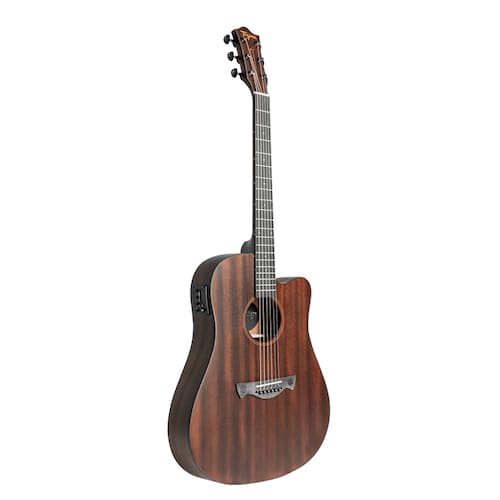 Com corpo totalmente em sapele, formato folk cutaway e acabamento flat, o Tagima San Francisco oferece timbre encorpado,