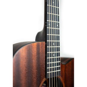 A escolha do sapele para corpo, fundo e laterais traz características sonoras similares ao mogno,