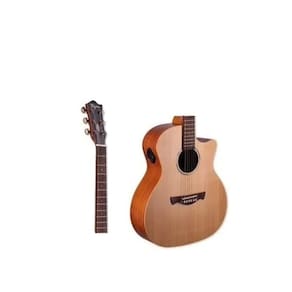 Características: - Marca: Tagima - Modelo: FRONTIER EQ - Cor: Natural - Acabamento: Fosco - Tampo: Spruce sólido - Lateral / Fundo: Sapele - Braço: Okoume - Cavalete e Escala (25.5"): Rosewood - Nut: 43mm - Captação: Piezo - Equalizador: Tagima Ambience com Bluetooth e Afinador - Controles: Volume, Reverb, Delay e Chorus - Bojo: 95mm X 105mm - Tarraxas: Estilo latão envelhecido - Possuí Bluetooth: Sim