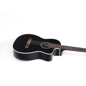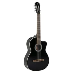 Violão Takamine Gc2 Ce Acústico Nylon Preto O GC2-BLK é um violão clássico atraente, construído para oferecer um belo som de cordas de náilon. Uma excelente escolha para qualquer músico em busca de uma guitarra clássica acessível que tem um desempenho bem acima de seu preço, a GC2-BLK possui um tampo de abeto selecionado com suporte de ventilador e parte traseira e laterais de mogno para um som completo e equilibrado. O braço de mogno confortável e escala de louro fornecem ótima sensação e jogabilidade. Especificações Corpo: Spruce Fundo: Mogno Preto Lateral: Mogno Preto Braço: Mogno Finger Board: Louro Largura da Porca 2 50,8 mm Cor: Preto