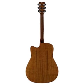 Violao electro-acustico estilo dreadnought com cutaway da serie FGX da Yamaha. Tampo em spruce solido, laterais e fundo em natookume, pre-amplificador System-66 com captador piezo + afinador, som balanceado tanto plugado quanto ao natural; ideal pra show ou gravacao.