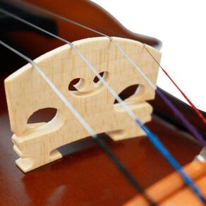 Acessórios inclusos : Queixeira, estandarte, cravelhas e botão: Boxwood Micro afinador: Metal cromado 1 unidade Arco iniciante feito em madeira maçaranduba, crina natural, talão wengwood Estojo térmico modelo gota