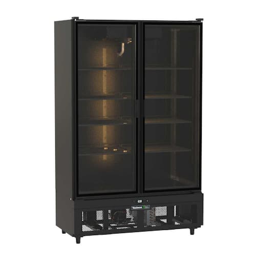 - Equipado com aquecimento de colunas; - Tecnologia Frost Free, evapora a água do degelo automático; - Pés plásticos com regulagem de altura; - Revestimento interno e externo, em aço galvanizado pré-pintado em preto; - Portas com borda infinita; - Gás R290, fluido natural, sem impactos negativos na camada de ozônio e alta eficiência energética; - Possui 4 níveis de prateleira; - Controlador digital de temperatura: Bebidas: - 5C a 2C; - Iluminação LED 3000K; - Câmara com vidros duplos temperados, sendo o externo Low-e baixa emissivo, padrão aquecido para bebidas.