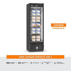 Visa Cooler Sorvete Porta Vidro Aquecido Ar Forçado -22ºC 400L VCS400PVPP Preto Externo e Interno 220V - Refrimate