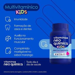 Vitaminas Kids Neo Quimica Imunidade Morango Zero Açúcar 60 Comprimidos Mastigáveis