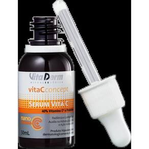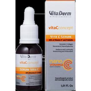 Vita Derm Vita C Concept Sérum de Linhas para todos os tipos de pele. vita Derm Vita C Concept promove hidratação, revitaliza a pele e uniformiza o tom. Sérum Vita Derm Vita C Concept traz fórmula enriquecida com vitamina C pura que promove luminosidade e radiância, 2 tipos de ácido hialurônico, que auxiliam na hidratação profunda, nanoresveratrol com potente ação antioxidante, e colágeno para auxiliar na melhora da firmeza e elasticidade da pele. Essa combinação de ativos garante regeneração da pele e uma poderosa ação de Linhas. Esse sérum possui textura suave e pode ser no rosto, mãos, colo e pescoço. Marca: Não Informado