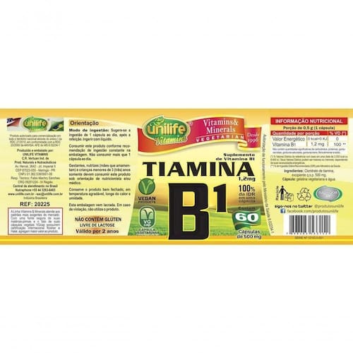 Cada cápsula contém 1,2 mg de Vitamina B1.