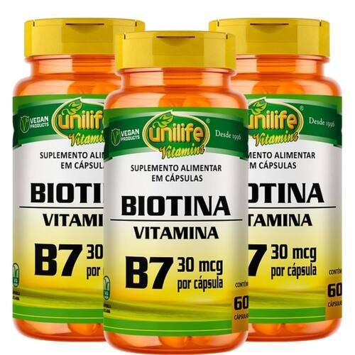 Vitamina B7 Biotina 60 capsulas 500 mg Kit com 3
