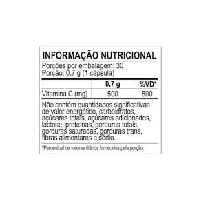 - alta concentração de vitamina c em uma única cápsula, na forma de ácido ascórbico. - uma única cápsula atende 500% das necessidades diárias. - antioxidante que protege dos danos causados pelos radicais livres. - auxilia no funcionamento do sistema imune e na absorção de ferro dos alimentos. - auxilia na formação do colágeno e regeneração da vitamina e. - auxilia no metabolismo energético, proteínas e gorduras. - formato prático - cápsula. - zero calorias. - zero açúcares. - zero lactose. - não contém glúten. - vegano.