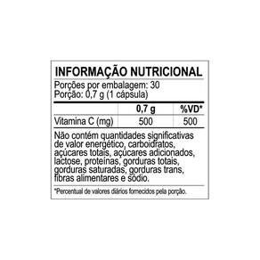 - alta concentração de vitamina c em uma única cápsula, na forma de ácido ascórbico. - uma única cápsula atende 500% das necessidades diárias. - antioxidante que protege dos danos causados pelos radicais livres. - auxilia no funcionamento do sistema imune e na absorção de ferro dos alimentos. - auxilia na formação do colágeno e regeneração da vitamina e. - auxilia no metabolismo energético, proteínas e gorduras. - formato prático - cápsula. - zero calorias. - zero açúcares. - zero lactose. - não contém glúten. - vegano.