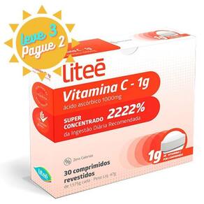 Com apenas 1 comprimido ao dia da Vitamina C 1g da Litee Farma, você garante 2222% da dose diária recomendada pelos médicos e nutricionistas. A Vitamina C protege contra os radicais livres, auxilia na absorção do ferro dos alimentos, na formação de colágeno e no metabolismo de proteínas e gorduras. A Vitamina C 1g concentrada da Litee Farma não engorda, não contem glúten e aumenta significativamente a imunidade.