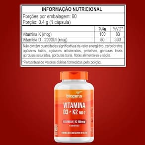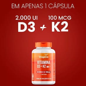 Com uma potente dose de 2.000 ui de vitamina d3 e 100mcg de k2 mk7 afinal, por que o nosso produto se destaca Porque vai além do básico. Cada cápsula é uma fusão magistral da natureza e da ciência, criada para lhe proporcionar os máximos benefícios à saúde. A combinação da vitamina d3 e k2 não é apenas uma coincidência. Juntas, elas formam a dupla perfeita para a formação e manutenção de ossos e dentes saudáveis. Enquanto a vitamina d3 auxilia na absorção de cálcio e fósforo, a vitamina k garante que este cálcio seja direcionado para onde é realmente necessário, como seus ossos, e não para lugares indesejados, como artérias. Ingerir 1 cápsula ao dia, preferencialmente após refeição ou conforme orientação profissional.
