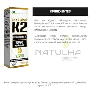 Esta vitamina K2 em gotas contém 120mcg de menaquinona-7 por porção de 5 gotas. A menaquinona-7 é uma forma de vitamina K2 que desempenha um papel vital na saúde óssea e cardiovascular. Além disso, este suplemento é enriquecido com óleo de algodão, antioxidante acetato de dl-alfa-tocoferol e aroma natural de laranja, proporcionando um sabor agradável.