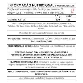 1 unidade do produto: vitamina k2 menaquinona mk7 100mcg 60 cápsulas - medinal.