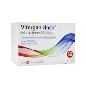 Vitergan Zinco é um suplemento vitamínico e mineral antioxidante. Vitergan zinco reúne em sua composição vitaminas e minerais com atividade antioxidante para a neutralização dos radicais livres.