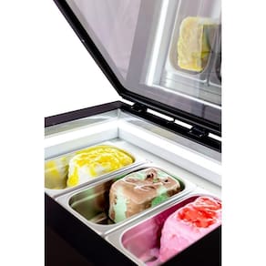 Vitrine de Bancada para Gelatos 60L RF401 Frilux. Ideal para sorveterias, confeitarias, conveniências e similares. Projetada especialmente para exibir e conservar sorvetes. Iluminação interna em full LED nas quatro laterais. Possui tampa de vidro com aquecimento e com borracha de vedação. Refrigeração estática, com controlador digital. Compressor Embraco com gás R-290. ACOMPANHA: 3GN's de 1/3x100mm. CAPACIDADE: 60l. FAIXA DE TEMPERATURA: -23C a +10C. PESO: 60Kg. DIMENSÕES EXTERNAS(CxAxL): 67x38x76cm. Toda nossa linha de produtos estão certificados e atendem a portaria 371 do INMETRO referente a certificação de segurança. Vitrine de Bancada para Gelatos 60L RF401 Frilux é na Atau.