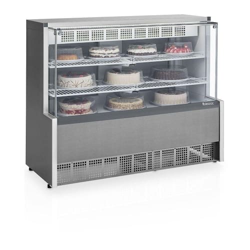 Vitrine Refrigerada Gpea140r Gelopar Aurora Confeitaria 1,40mt Tipo Inox 220v Vitrine Refrigerada Confeitaria Linha Aurora Dupla Função GPEA140R Gelopar. Vitrine Refrigerada Confeitaria Dupla Função. Conservação e Exposição de bolos, tortas, doces e confeitos. Conservação e Exposição de bebidas, frios e laticínios. Refrigeração: Estática com evaporador aletado. Temperatura: Bolos: +5C a +10C. Bebidas: 0 a +7C. Degelo: Manual. Controle de Temperatura: Termostato. Revestimento Externo: Gabinete: Monobloco em aço pré-pintado. Iluminação LED (interna), com interruptor. Porta(s) injetada(s) em PSAI. Prateleiras: 2 níveis, aramadas. Pés niveladores. Vidros temperados sujeitos a condensação da umidade do ar. Recomendável embalagem com cúpula para proteção dos bolos, pois poderá haver gotejamento da condensação da chapa do evaporador. TEMPERATURA: bolos +5C a +7C /bebidas 0C a +7C. PESO: 80,5 Kg. CONSUMO: 5,72 kWh/dia. DIMENSÕES EXTERNAS (CxAxL): 140x115x63,2cm. Equipamento certificado conforme Portaria Inmetro n 371/2009. Vitrine Refrigerada Confeitaria Linha Aurora Dupla Função GPEA140R Gelopar é na Atau. Marca - Gelopar Modelo - GPEA140R Frente - 1,40m Altura - 1,15m Profundidade - 63cm. Temperatura - bolos +5C a +7C/bebidas +1C a +7C Peso - 80,5 Kg Consumo - 5,72 kWh/dia