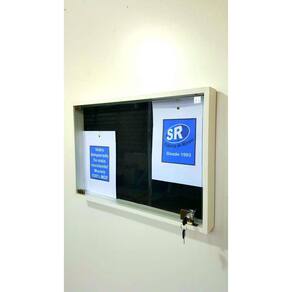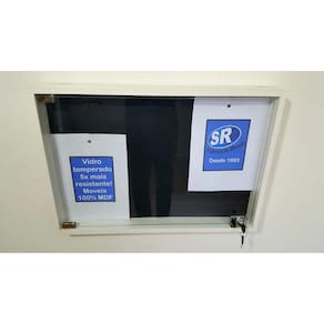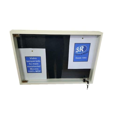 Quadro de avisos com porta de vidro temperado e fechadura com duas chaves, ideal para protegerdocumentos e como expositor de produtos sem a adulteração de outras pessoas.MATERIAL:100% MDF TX 15mm: o máximo em qualidade, durabilidade e resistência a riscos.Vidro Temperado: 5x mais resistente que o vidro comum.Fechadura com duas chaves.Dobradiça Cromada.Fundo de FeltroDIMENSÕES QUADRO:Comprimento: 86 , Altura: 47 , Profundidade: 7Profundidade Interna: 5.Já enviamos montadaQUEM SOMOS: SR fábrica de móveis, fundada em 1993GARANTIA: 90 dias contra defeito de fabricação. Marca: Sr Fabrica De Moveis