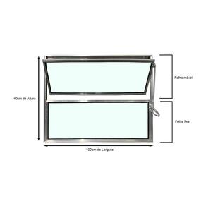 Especificações Técnicas Marca: Brecorimo Modelo: Basculante Linha Esmeralda Cor: Brilhante Material: Alumínio Vidro: Liso Verde 3mm Uma Seção Medidas da peça: 40 cm x 100 cm x 3 cm altura x largura x espessura