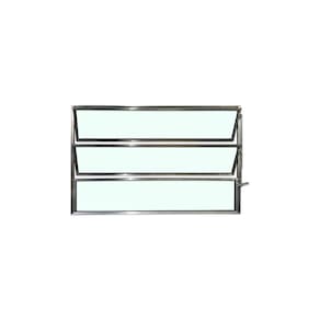 Especificações Técnicas Marca: Brecorimo Modelo: Basculante Linha Esmeralda Cor: Brilhante Material: Alumínio Vidro: Liso Verde 3mm Uma Seção Medidas da peça: 60 cm x 100 cm x 3 cm altura x largura x espessura