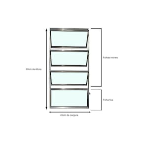 Especificações Técnicas Marca: Brecorimo Modelo: Basculante Linha Esmeralda Cor: Brilhante Material: Alumínio Vidro: Liso Verde 3mm Uma Seção Medidas da peça: 80 cm x 40 cm x 3 cm altura x largura x espessura