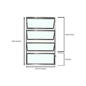 Especificações Técnicas Marca: Brecorimo Modelo: Basculante Linha Esmeralda Cor: Brilhante Material: Alumínio Vidro: Liso Verde 3mm Uma Seção Medidas da peça: 80 cm x 60 cm x 3 cm altura x largura x espessura