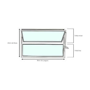 ?? CARACTERÍSTICAS Modelo: Vitro Basculante 1 Seção Linha: Esmeralda Material: Alumínio Cor: Branco Vidro: Liso 3 mm Medidas: 40 cm (A) x 80 cm (L) x 3 cm (C) Garantia: 1 ano Produto pronto para instalação