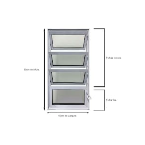 ?? CARACTERÍSTICAS Modelo: Vitro Basculante 1 Seção Linha: Jade Material: Alumínio Cor: Branco Vidro: Mini Boreal 3 mm Medidas: 80 cm (A) x 40 cm (L) x 4.5 cm (C) Garantia: 1 ano Produto pronto para instalação