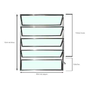 ?? CARACTERÍSTICAS Modelo: Vitro Basculante 1 Seção Linha: Esmeralda Material: Alumínio Cor: Brilhante Vidro: Liso 3 mm Medidas: 100 cm (A) x 80 cm (L) x 3 cm (C) Garantia: 1 ano Produto pronto para instalação