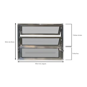?? CARACTERÍSTICAS Modelo: Vitro Basculante 1 Seção Linha: Jade Material: Alumínio Cor: Brilhante Vidro: Boreal 3 mm Medidas: 60 cm (A) x 80 cm (L) x 4.5 cm (C) Garantia: 1 ano Produto pronto para instalação