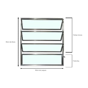 ?? CARACTERÍSTICAS Modelo: Vitro Basculante 1 Seção Linha: Esmeralda Material: Alumínio Cor: Brilhante Vidro: Liso 3 mm Medidas: 80 cm (A) x 80 cm (L) x 3 cm (C) Garantia: 1 ano Produto pronto para instalação