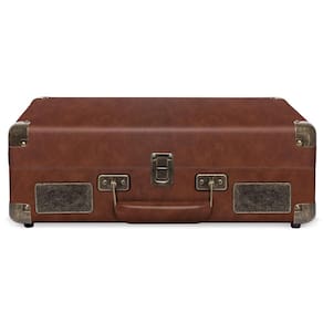 Vitrola Raveo Sonetto Vintage Brown com toca-discos de 33 1/3, 45 e 78 RPM, conexão Bluetooth, entrada USB para reprodução e gravação, saída auxiliar, bivolt, potência de 10 Watts RMS.Progressive Scan
