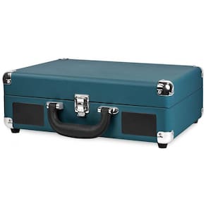 TOCA DISCO DE TRÊS VELOCIDADES ACIONADA POR CORREIA Este toca discos de mala de 3 velocidades 33 1, 3, 45, 78 rpm apresenta QUALIDADE DE SOM PREMIUM ATUALIZADA e fica em pés de isolamento de som que evitam vibração. É perfeito para sua sala de estar, quarto ou escritório.