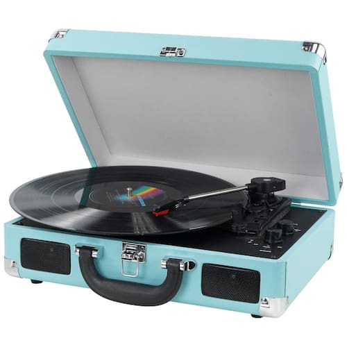 Toca discos USB Como um toca discos USB e simplesmente se conecta ao seu PC via cabo USB. Use o software incluído para gravar e converter seus registros em MP3 ou WAV. Elegante toca discos de vinil autônomo com estilo vintage. Design de pasta, mala para fácil portabilidade e aparência elegante Três velocidades Ajustável para reproduzir discos de 33 1, 3, 45 ou 78 RPM Alto falantes integrados Alto falantes estéreo dinâmicos de gama completa. Conexão phono traseira para conectar o toca discos ao seu aparelho de som doméstico Braço de tom dinâmico e balanceado com controle de amortecimento suave Marca: Não Informado