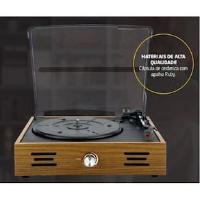 Vitrola Toca Discos Pulse Retrô Sp365 Perkins Turntable DescriçãoVitrola Toca Discos Perkins Turntable SP365 Com visual retrô, a vitrola Perkins te faz reviver os bons e velhos tempos sem deixar a modernidade de lado. Ouça sua playlist favorita com máxima qualidade de som. Conexão Conecte seu smartphone ou tablete através da conexão Bluetooth ou entrada auxiliar. Aumente a potência do seu som Além das caixas de som embutidas na sua vitrola Perkins, a saída de áudio RCA permite que você conecte sua vitrola a outras caixas de som. Funcional e elegante Além de obter a melhor qualidade de seus discos, a vitrola Perkins esbanja elegância com seu design vintage, sendo um dos principais adereços do seu quarto ou sala de estar. Três velocidades de reprodução Altere a velocidade de reprodução da sua vitrola de acordo com necessidade: 33 1/3, 45 ou 78 RPM. Proteção para os seus xodós A tampa de acrílico protege seus discos para que não fiquem empoeirados ou danificados. Materiais de alta qualidade Cápsula de cerâmica com agulha Ruby. Características gerais: Marca: Pulse Retrô Potência: 5W Frequência de resposta: 100Hz 10KHz Versão Bluetooth: 5.0 Driver: 2x (70x40mm) Conexões: BT/AUX/RCA Bivolt automático Velocidades de reprodução (vitrola) 33 1/3, 45 e 78 RPM Função Auto-STOP Especificações técnicas: Composição: Plástico ABS, ferro e cobre. Cor: Madeira Dimensões: (A) 13 x (L) 27,2 x (C) 32,2 cm Peso: 1,95 Kg Conteúdo da embalagem: - 1 Vitrola Pulse Perkins - 1 Adaptador de energia com cabo - 1 Manual do usuário Imagem meramente ilustrativa Ean: 7899838872308