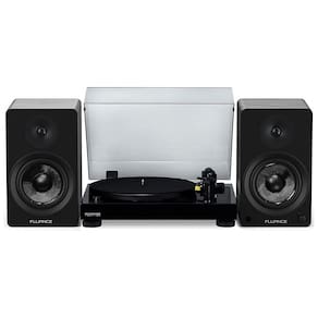 DESEMPENHO INIGUALÁVEL Com um amplificador integrado de 120 W, esses alto falantes ativos oferecem um som equilibrado com detalhes refinados e som estéreo limpo e cheio de ambiente que eleva sua experiência musical. COMPONENTES PREMIUM DO TOCA DISCO Embalado com componentes de alto desempenho, incluindo uma caneta cônica Audio Technica AT91, tapete de feltro, braço de tom de precisão tipo S, pré amplificador Texas Instruments, recriando a performance da maneira que o artista pretendia. COLUNAS PODEROSAS Drivers de fibra de vidro trançada de 5 polegadas, leves e rígidos, produzem frequências de médios detalhadas e graves limpos e sem distorções com precisão acústica impressionante. ARMÁRIOS DE MADEIRA DE PRECISÃO Desfrute de um som quente dos gabinetes de madeira MDF com suporte interno, meticulosamente projetados para remover ressonâncias indesejadas com uma porta de graves traseira para graves completos e naturais. CONFIGURAÇÃO DE ÁUDIO SIMPLES Alterne facilmente entre seus discos de vinil e transmita seus aplicativos de música favoritos através de Bluetooth com esta configuração simples plug and play não é necessário um amplificador separado