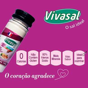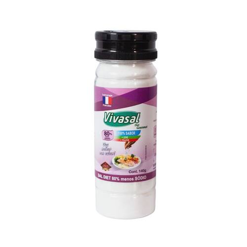 Vivasal 80 Diet Gourmet - Saleiro 140g Sal diet reduzido em sódio 80% e enriquecido em potássio e mais minerais.Uma composição mineral inovadora para alta redução de sódio e com sabor para cozinhar e temperar sua comida de maneira saudável seguindo dieta com restrição de sódio.O único sal diet com sabor de sal que vai fazer você redescobrir o prazer da comida caseira, você vai se surpreender! VIVASAL 80 , o sal Diet Gourmet reduzido em sódio 80% para tornar sua dieta restrita em sódio muito mais saborosa. Redução 80%, a taxa de redução recomendada para uma dieta restrita em sódio sobre orientação médica.Mais minerais para auxiliar sua dieta. Enriquecido em potássio em proporção equilibrada para aumentar seu consumo deste mineral muito importante para acompanhar seu tratamento. Mistura de minerais - Zero calorias - Não contem glúten, Não contem glutamato, Não contem aromas Sabor igual ao do sal comum para continuar se deliciando com sua comida e redescobrir todos os prazeres e os sabores da mesa.Usar no dia a dia na cozinha e na comida para dieta restrita em sódio em substituição do sal comum nas mesmas proporções.Formato saleiro – 140g com 2 bocas: Prático e bonito sobre a mesa ou na cozinha. Sal Hipossódico Conforme Anvisa - RDC 715/22