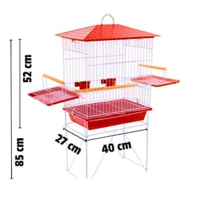 1 Viveiro para calopsita mansa na medida de 52 cm de altura sem os pés, 85 cm de altura com os pés, 40cm de largura com bandejas laterais fechadas, 76 cm de largura com bandejas laterais abertas e 27cm de comprimento.