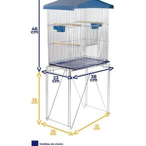 Ficha técnica: saiba mais sobre o produto O viveiro pequeno é produto ideal para acondicionar seus pássaros. Confira os detalhes: Medidas 46cm de altura (viveiro) 23cm de largura (viveiro) 38cm de comprimento (viveiro) 36cm de altura do pé (suporte) 26cm de largura do pé (suporte) 41cm de comprimento do pé (suporte) 1,5cm de distância entre as malhas (grades) Material Arame de alto padrão com tratamento de zincagem que reduz a incidência de ferrugem.