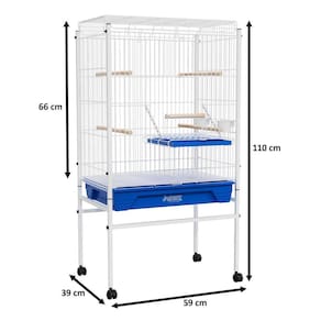 Características Principais: - Comprimento:59 cm - Altura: 110 cm - Profundidade: 39 cm - Altura do viveiro sem os pés somente o corpo : 66 cm - Malha larga de 17mm para máxima segurança. - 4 poleiros para exercício e descanso. - 2 Comedouros plástico - Bandeja plástica removível para fácil limpeza. - Porta com poleiro para acesso fácil e diversão - Construção durável com arame BTC e pintura epóxi branca. Ideal para Diversas Espécies de Aves: Este viveiro é projetado especificamente para atender às necessidades das ring necks, calopsitas e papagaios, proporcionando-lhes um espaço seguro e acolhedor para viver e explorar. Marca: Gaiolas Quatiguá