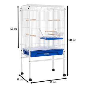 Características Principais: - Comprimento:59 cm - Altura: 110 cm - Profundidade: 39 cm - Altura do viveiro sem os pés somente o corpo : 66 cm - Malha larga de 17mm para máxima segurança. - 4 poleiros para exercício e descanso. - 2 Comedouros plástico - Bandeja plástica removível para fácil limpeza. - Porta com poleiro para acesso fácil e diversão - Construção durável com arame BTC e pintura epóxi branca. Ideal para Diversas Espécies de Aves: Este viveiro é projetado especificamente para atender às necessidades das ring necks, calopsitas e papagaios, proporcionando-lhes um espaço seguro e acolhedor para viver e explorar. Marca: Não Informado