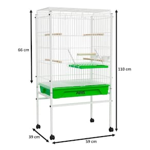 Características Principais: - Comprimento:59 cm - Altura: 110 cm - Profundidade: 39 cm - Altura do viveiro sem os pés somente o corpo : 66 cm - Malha larga de 17mm para máxima segurança. - 4 poleiros para exercício e descanso. - 2 Comedouros plástico - Bandeja plástica removível para fácil limpeza. - Porta com poleiro para acesso fácil e diversão - Construção durável com arame BTC e pintura epóxi branca. Ideal para Diversas Espécies de Aves: Este viveiro é projetado especificamente para atender às necessidades das ring necks, calopsitas e papagaios, proporcionando-lhes um espaço seguro e acolhedor para viver e explorar. Marca: Não Informado